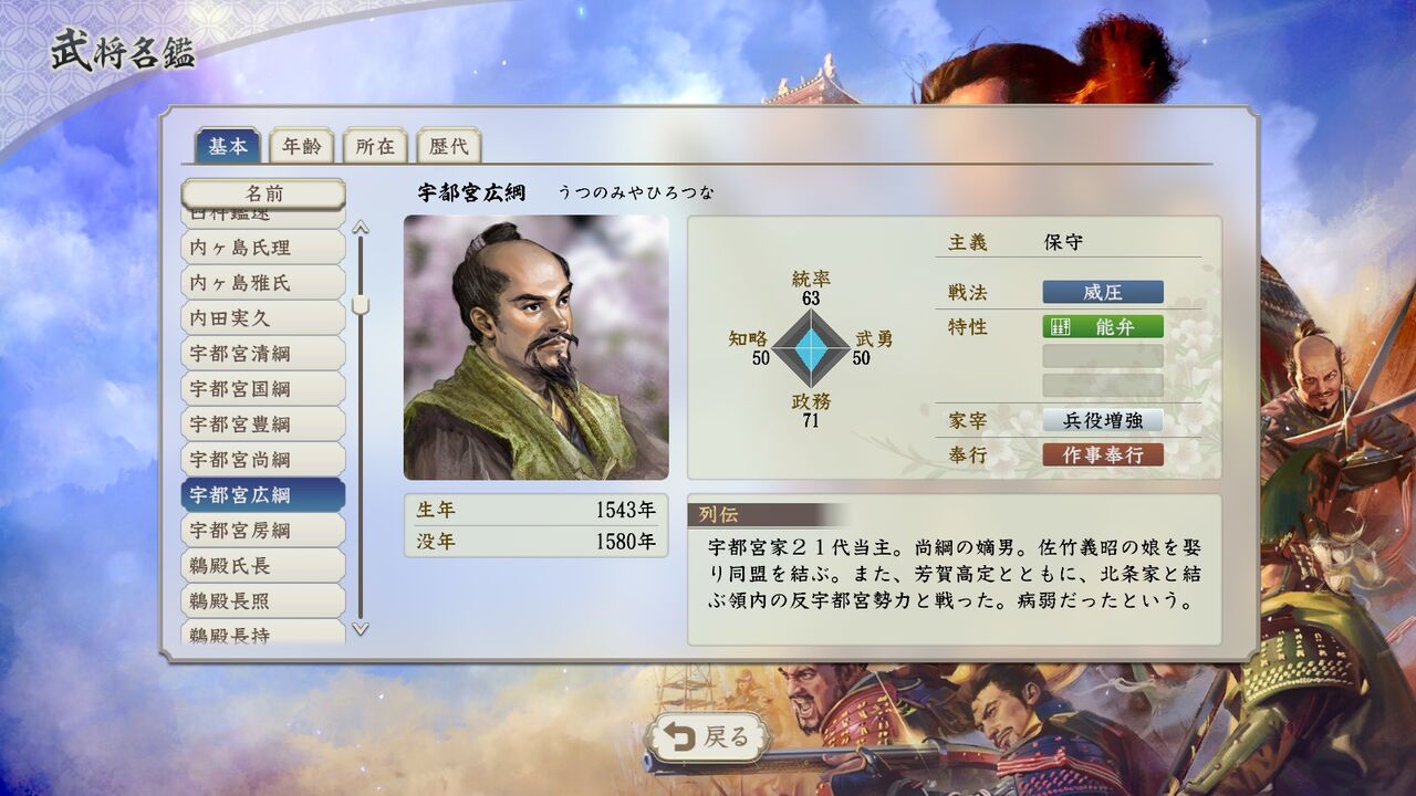 おとなりの上杉憲政相手にタイマンなら勝てる数値だな