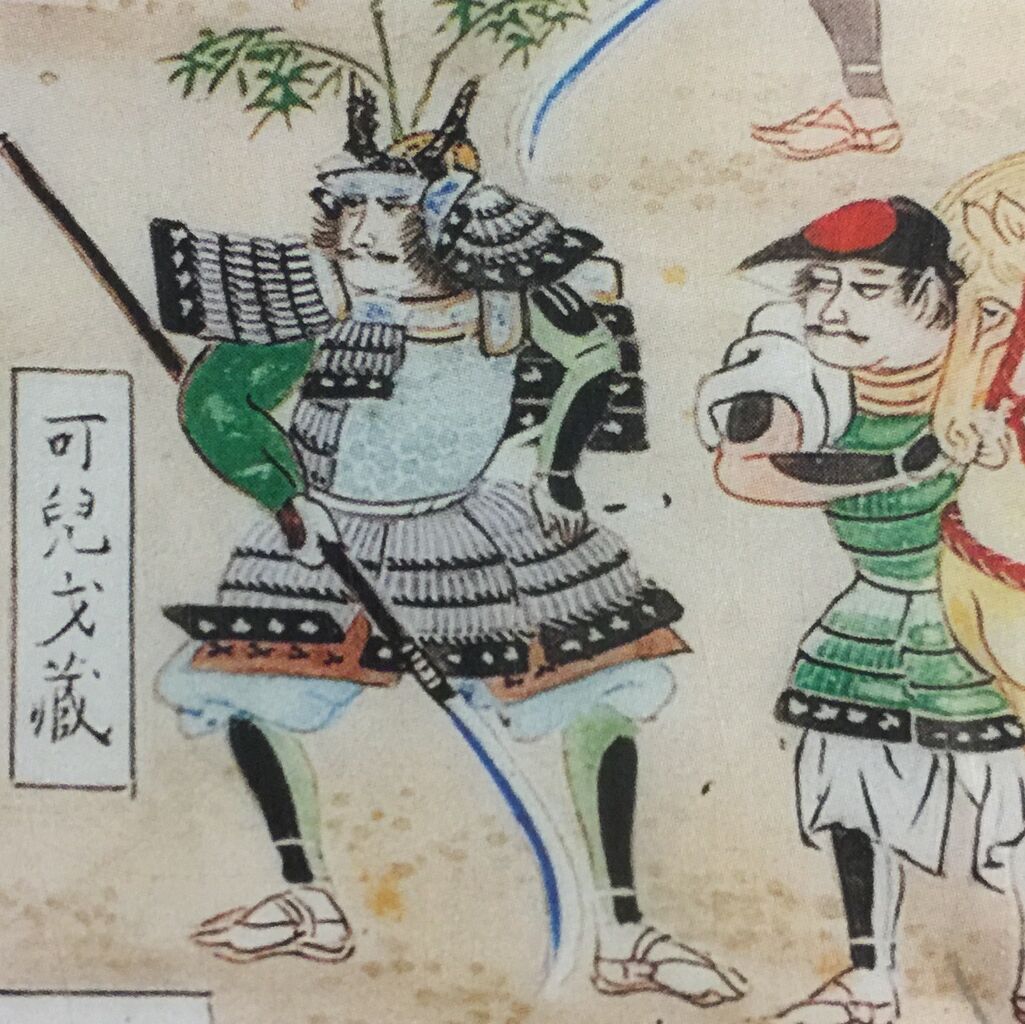 鹿之助と品川大膳の一騎討ちで大膳が弓を取り出したとき「一騎討ちに飛び道具とは卑怯なり」と叫んで矢を放ち、大膳の弓の弦を切ったという